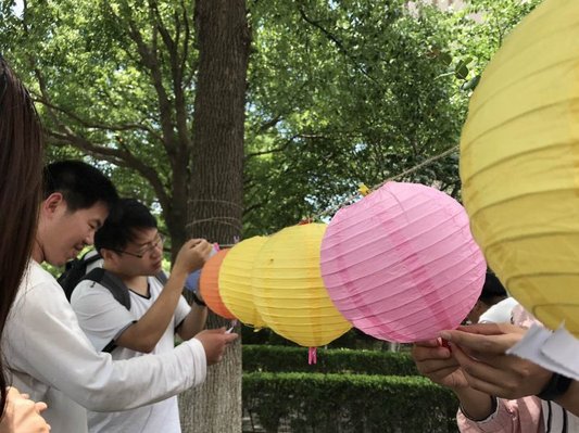 在套圈的场地处,同学们站在线外把手中的套圈扔向自己想要的用品,有的同学扔得很准,几乎百发百中,有的同学反复练习,现场非常热闹。接下来是最考验头脑的一个场地:猜灯谜。猜灯谜是中国独有的一种传统民俗文娱活动形式,很考验动脑能力,谜语需要根据谜面上的一些蛛丝马迹,抽丝剥茧,最后找到谜底。同学们抽到谜面之后就仔细的想答案,经过一番思考过后,同学们猜出了谜底。而最考验手上功夫技术的就是夹弹珠了,需要用筷子把弹珠从一个杯子夹到另一个杯子里,这很考验同学们对筷子使用的熟练程度了,力度不能太大,也不能太小,又圆又滑的弹珠,很不听话,随时都有可能掉下去,大家都聚精会神地完成这自己的项目。至于最受欢迎活动就是自己制作香囊了,很多同学都是第一次亲手参与到制作香囊里,大家选择好自己喜欢的颜色的香囊和香料,小心翼翼地包裹起来,并表示要把这个亲手制作的香囊送给自己的家人。