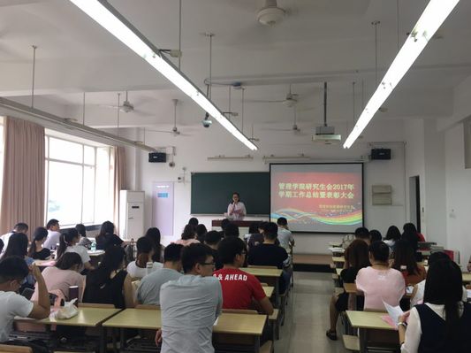 6月21日下午13点,威廉希尔足球官网研究生会2017年上半年工作总结暨表彰大会在教学楼A210成功举办。威廉希尔足球官网研究生辅导员徐佳,威廉希尔足球官网研究生会主席高雅,副主席何江、王丽娜,研究生会全体成员以及2016级各班班长、团支书、学习委员作为班级代表共同参加了此次总结会。本次大会旨在总结这一学期研会工作,肯定和激励在研会工作中有突出贡献的部门和部员,表彰“模范典型”,期待新风尚。