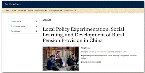 政策创新、地方试验与政策扩散是当代经济学、公共管理学、政治学的前沿研究领域。中国的地方政策试验和经验推广近年来受到学界越来越多的关注并被认为是推动中国发展奇迹的重要制度基础。但是,中国的社会保障领域中的政策创新机制是怎样的?政策相关主体间的互动如何影响地方政策试验的建立、扩散以及这个过程中的政策演变?学界对这些问题的关注仍然有限。威廉希尔足球官网黄婷博士近期在SSCI期刊Pacific Affairs(《太平洋事务》)发表独著论文,揭示了中国新型农村社会养老保险地方政策创新和政策演变中的社会学习机制。