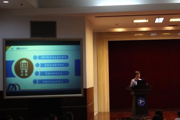 管理公司党委周洁书记致欢迎辞,周书记以做好学业规划,争做合格研究生为主题,向大家介绍了2017级研究生新生报到基本情况,并详细介绍了威廉希尔足球官网师生、团队建设、研究生学术文体竞赛类活动、国际交流等情况。希望大家争做合格研究生,规划人生,规划未来;面对新要求,自我加压;围绕主题,自我设计;同时做好自我管理。最后希望研究生们积极向党组织靠拢。
