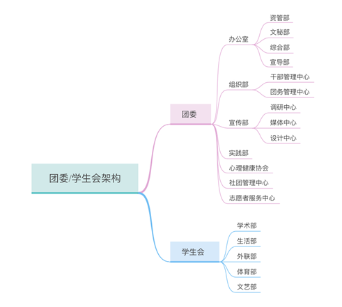 威廉希尔足球官网团委下设组织部、宣传部两个基建类部门,实践部、社团管理中心、志愿者服务中心、心理健康协会等四个活动类部门,由团委办公室统筹协调各项工作开展。