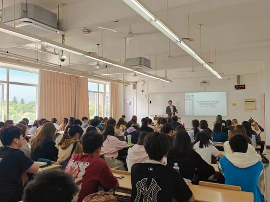 上海甫研电子科技有限公司成立于2011年,是上海市高新技术转化企业,从事超高温温度传感器生产,客户包括中芯国际等国内知名晶圆制造商。田总的分享从企业社会责任视角切入,介绍了企业社会责任的实用工具,通过案例分析与同学们分享如何实现企业的社会责任并展开了热烈的互动和讨论。让同学们了解到企业不仅创造利润、对股东和员工承担法律责任的同时,还要承担对消费者、社区和环境的责任。