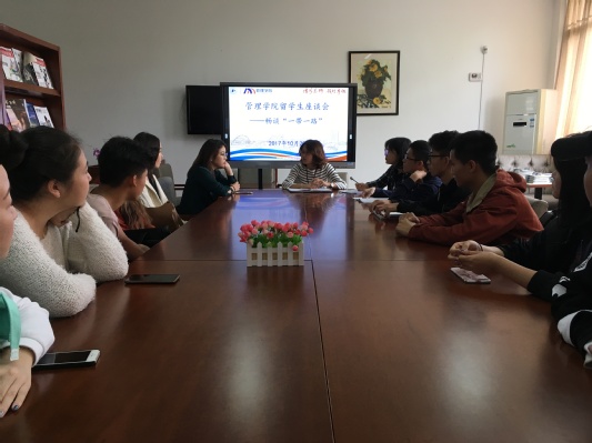 会上思政辅导员魏晓静老师首先向参加座谈的同学介绍了党的十九大,并阐述了“一带一路”建设背景,从理念转化为行动,从愿景转化为现实,离不开党中央高瞻远瞩的规划引导,离不开“一带一路”国家的共同努力。