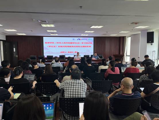 会上,李进付博士从《中华人民共和国学位法》的制定背景和过程、学位工作的根本要求和基本原则、学位工作体制、学位授予条件、学位授予程序和学位质量保障等方面进行了说明;重点解读了“三级两类”学位体系制度;并从“自我管理”、“外部监督”、“分类培养”、“导师队伍建设”、“法律责任”等五个方面详细阐述了学位法对保障学位授予质量的规定。