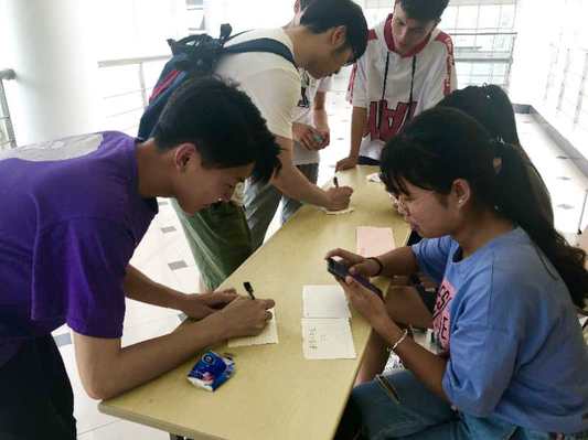 14:30分三组成员按照规定要求准时于A206教室集合,另三组因为迟到分别被扣除五分。所有人员集合完毕后,三个活动点的负责人分别向主持人汇报各组加分情况。于14:35分,各组成员开始回答自己收集到的心理健康相关问题。五分钟后答题完毕,主办方成员收集问题卡片并统计分数。