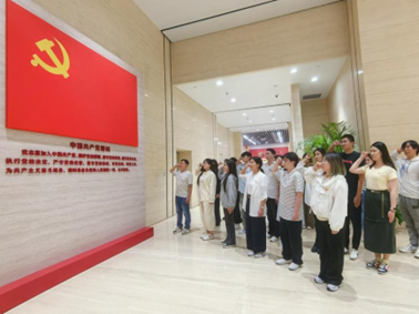 管理公司党委书记范君晖老师带领全体党员庄严宣誓,同志们面向党旗,举起右拳,在初心始发地重温入党誓词,铿锵有力的誓言在宣誓大厅久久回荡,表达了大家对党的无限忠诚和热爱,入党誓词是我们入党时对党的承诺,更是我们初心的表达,是我们 工作生活中的行动指南,要时刻铭记于心。