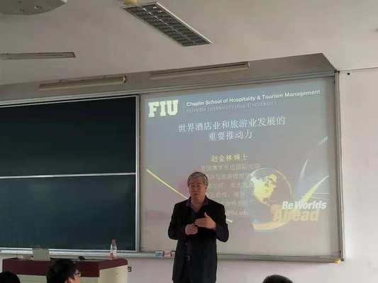 10月28日,美国佛罗里达国际大学旅游与酒店威廉希尔足球官网赵金林教授来访工程大,为邮轮专业本科生做了题为“世界酒店业和旅游业发展的重要推动力”的专题讲座,深入浅出地向同学们介绍了世界酒店业和旅游业发展的重要推动力的主要内容。