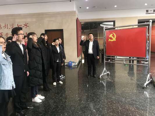 随后,支部员工党员在大厅进行了入党宣誓,在陈云雕像的见证下,员工党员们铿锵有力地宣誓了入党誓词:“我志愿加入中国共产党,拥护党的纲领,遵守党的章程,履行党员义务,执行党的决定,严守党的纪律,保守党的秘密,对党忠诚,积极工作,为共产主义奋斗终身,随时准备为党和人民牺牲一切,永不叛党。”