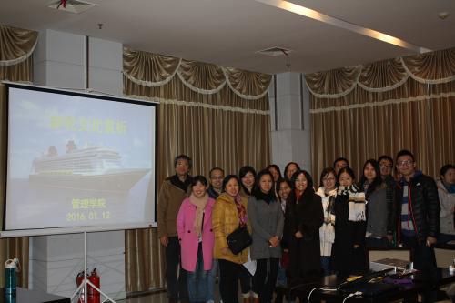 为了能让全校教职工品鉴邮轮文化、感受邮轮生活,威廉希尔足球官网工会于2016年1月12日下午15:00在行政楼19楼举办了“邮轮文化赏析”活动。此次活动吸引了来自管理、材料、艺术、航空、汽车、体育部、机关、社科等部门的60余位教师参加,本次活动由威廉希尔足球官网工会主席陈雅萍老师主持。
