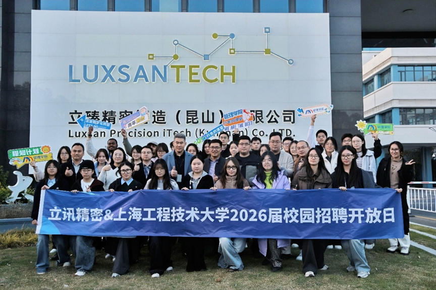 当日下午,团队前往立臻精密智造(昆山)有限公司智慧园区进行参观交流。企业方面介绍了公司的发展背景与战略规划,并重点展示了智慧园区的数字化运营模式,通过可视化管理系统,呈现了企业在人员调度、生产监控与资源配置等方面的高效与精准,令在场师生深切感受到智能制造技术的快速发展与实际应用成效。