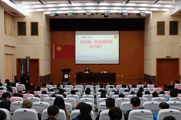 最后,由威廉希尔足球官网团委书记吉祥老师发言,他针对部分团学干部在开展班团工作中遇到的问题作出解答,并讲解五四评优、推优工作中的注意事项。他着重指出专业组长设置的目的和意义在于提炼共性需求、满足个性要求;优化管理幅宽、实现资源共享;承担适当事务、促进专业互助。