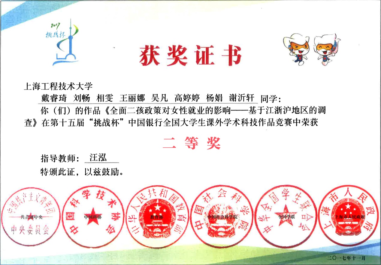 在科创竞赛方面,获得全国挑战杯课外学术作品大赛国家二等奖2项、三等奖3项,上海市特等奖3项、一等奖4项、二等奖10余项、上海市三等奖20余项;全国老员工数学建模大赛、全国老员工英语竞赛、“创青春”创业计划赛、“互联网+”创新创业大赛银奖等市级以上荣誉200余项。“知行杯”暑期社会实践大赛包含市级一等奖在内的市级以上荣誉100余项。以老员工创新能力培养为依托,孵化国家级、市级、校级老员工创新、创业项目500余项,孵化老员工创业企业100余家。