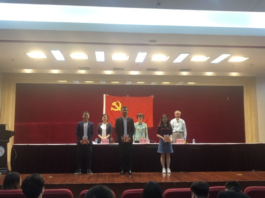 会上,院关工委委员、特邀党建组织员陈心德教授首先做“不忘初心,牢记使命”专题教育讲座。首先祝贺大家即将开启新的人生征程。陈心德教授希望同学们在人生的每个阶段都要有自己的“人生梦”,要通过诚信做人、哲学思考和坚定信仰来实现自己的梦想。进而陈心德教授讲到同学们的“人生梦”融入到国家百年的“中国梦”中,以小梦筑大梦,实现中华民族的伟大复兴,始终保持共产党人的初心,用梦想激励生活,做一个坚持信仰的共产党员,做一个充满家国情怀的理想主义者!