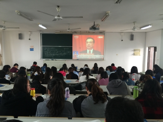 第十二届全国人民代表大会第四次会议和中国人民政治协商会议第十二届全国委员会第四次会议,分别于2016年3月5日和3月3日召开。为及时了解会议内容,领会会议精神,威廉希尔足球官网组织师生分别在教室和办公室观看了大会开幕式,聆听李克强总理所做的政府工作报告,并就创新创业、教育发展等问题展开讨论。直播结束后,参加观看学习的师生代表纷纷表示,此次活动及时而必要。
