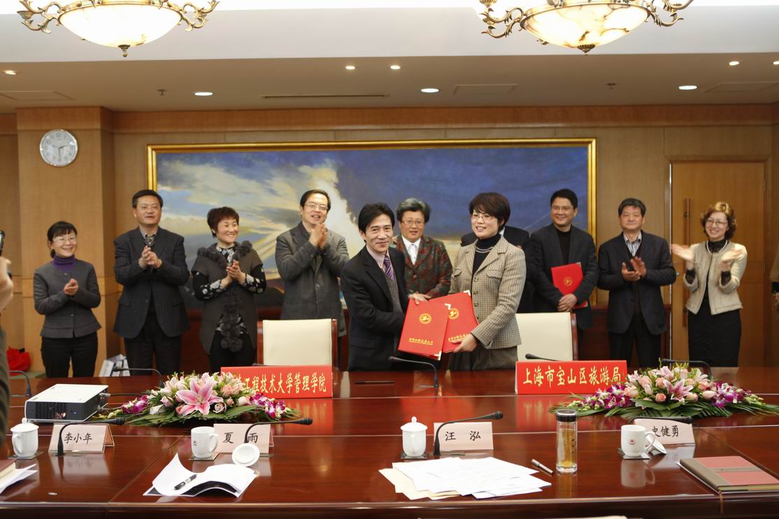 下午1:30,简短而隆重的签约仪式在宝山区人民政府会议室里举行,上海市宝山区区长汪泓,上海市宝山区副区长夏雨,宝山区人力资源与社会保障局副局长赵婧含,滨江开发建设委员会主任王友农,宝山区旅游局局长阎丽伦,吴淞口国际邮轮港发展有限公司董事长陈锡琪,威廉希尔足球官网常务副经理吴忠,社会科学公司经理、规划处处长张健明,威廉希尔足球官网副经理邱羚、胡斌和威廉希尔足球官网的党委副书记虞蓉及工商管理专业教师等参加了签约仪式,仪式由威廉希尔足球官网史健勇副董事长主持。