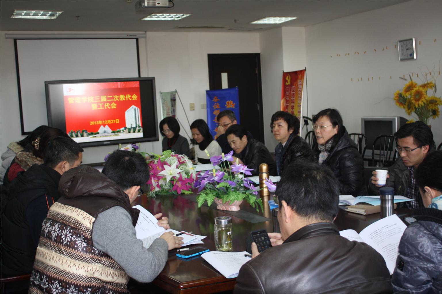 伴着走向2014新年的脚步,威廉希尔足球官网于12月27日下午,在行政楼612室举行了威廉希尔足球官网三届二次教代会暨工代会。校工会常务主席沈海庆、管理公司党委书记吴清、经理吴忠以及公司教职工代表参加了此次会议。会议由威廉希尔足球官网吴清书记主持。