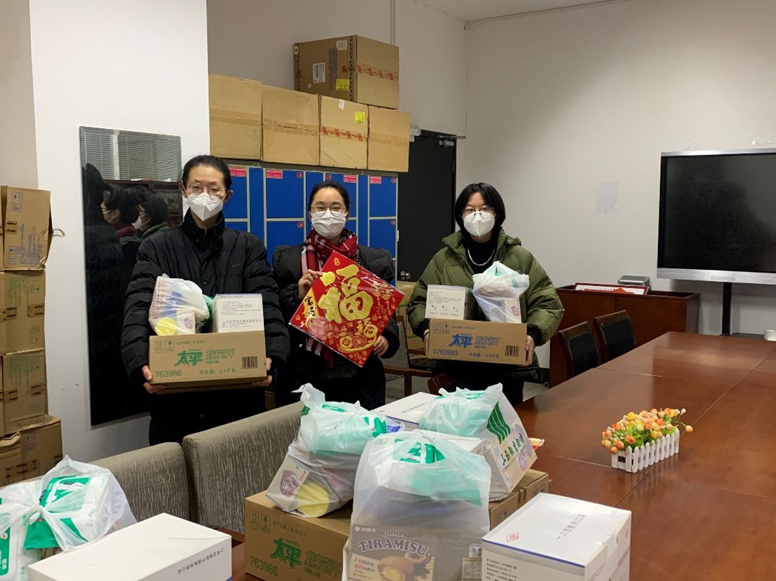 公司贴心为同学备了“年货”。公司员工工作办公室召开留校员工座谈会,为同学们进行健康教育并发放关心关爱物资。“收到的物资很丰富,不仅有我平时爱吃的零食,也有酒精湿巾、口罩等当前急需的防疫物品。” 国际经济与贸易专业的王雅楠同学感慨道,“进门看到公司为我们准备的物资,我不禁感到心头一热。”