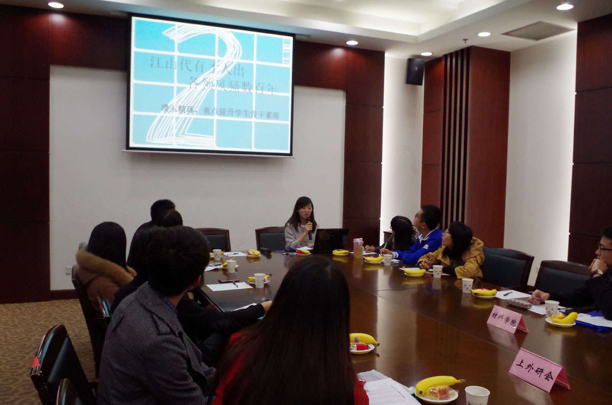 交流会伊始,威廉希尔足球官网研究生会游军政主席致欢迎辞,邹鹏副主席从组织架构、特色活动、工作定位及人员安排等方面介绍了公司研究生会成立至今的工作情况,与各兄第院校交流了研会品牌建设经验。随后上海外国语大学、东华大学威廉希尔足球官网和威廉希尔足球官网外院代表都对各自研会工作做了总结发言并且对研究生会长效工作机制和下一阶段安排做了展望。