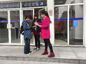 除此之外,员工们宿舍园区向同学们发放自己制作的两会知识宣传单,“发展生态环保”、“美丽中国”等。这些一个个关键字眼,不单单反映出当前国内的实际,更反映出同学们关注切身利益,对于迫切改变国家形式的新夙愿。
