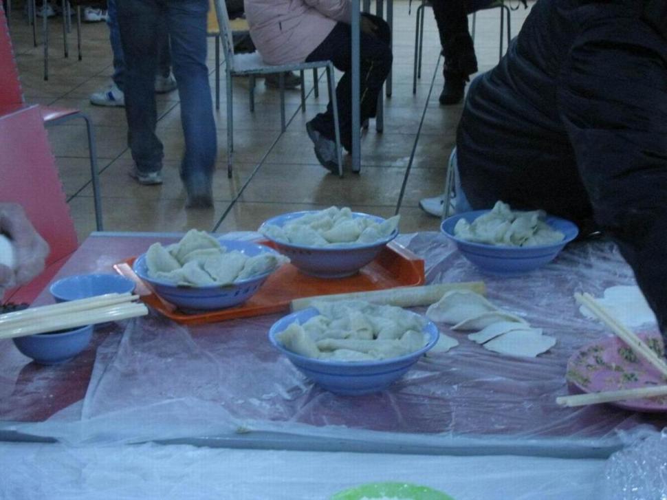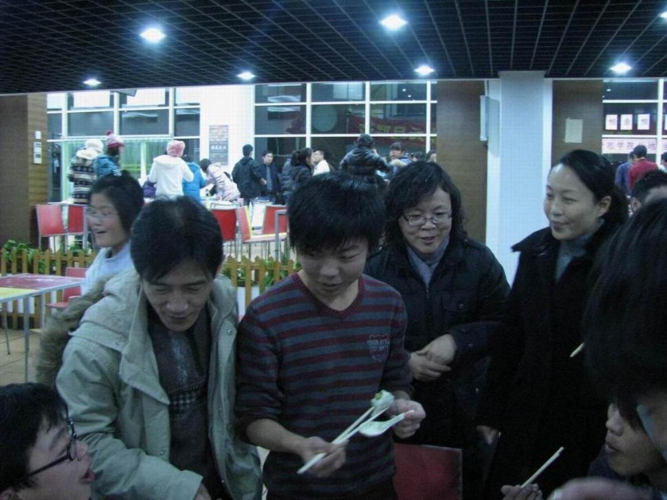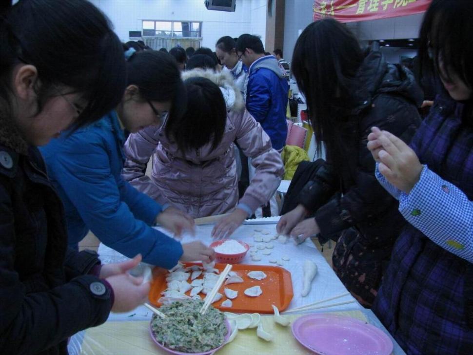 元旦的前一天,虽然外面的天气分外寒冷,但是同学们的心里却是暖融融的。师生欢聚包饺子,相亲相爱就像一家人,2011年在上海的元旦必将在同学们的心中留下美好的回忆。