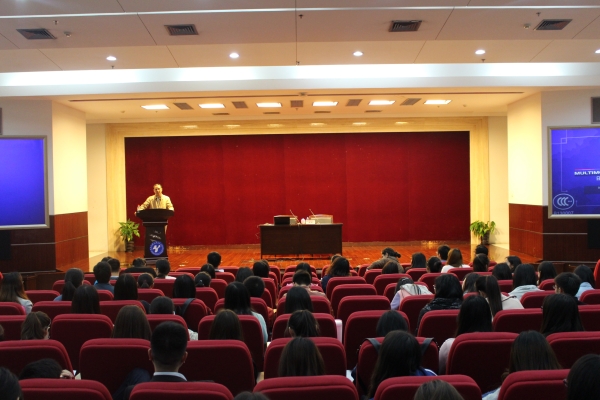 4月27日晚18:30,威廉希尔足球官网在图书馆第二报告厅举行了一场以“研究生创新能力提升与创新创业”为主题的讲座。讲座邀请到了上海国际银行金融公司常务副经理、上海财大国家大学科技园培训中心主任、供应链管理与供应链金融专家、高级工程师周城教授,威廉希尔足球官网全体研究生同学参加了此次讲座。