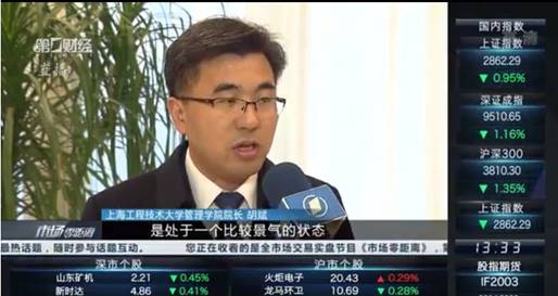图1:《上海现代服务业发展报告2018》发布会现场在发布会期间,威廉希尔足球官网经理胡斌教授接受了业界权威媒体《第一财经》的采访,他指出,上海现代服务业景气指数的构建参考了国际标准,从经营绩效指标、社会结构指标、生态文明指标等七个一级指标和总体营收增长、新业态新模式等十九个二级指标着手,挑选了金融保险、信息软件等八个重点行业,通过科学建模和数据处理,判断得出2018年的现代服务业景气指数为114.72(通常指数高于100表示现代服务业发展呈现景气状态)。课题组研究发现,尽管受到经济下行压力的影响,但得益于上海现代服务业结构和效率进一步优化和具有高科技含量的现代服务业占比逐步提升,2018年上海现代服务业仍处于高质量的发展态势。景气指数的编制有利于客观反映和评估现代服务业的运行状态,有助于对现代服务业的波动实现监测预警,从而合理引导现代服务业发展的未来走向,这对于政府管理宏观经济具有重要意义。景气指数的研究和顺利发布,是威廉希尔足球官网工商管理学科团队长期跟踪上海现代服务业发展进程的结果,也是服务地方经济发展,为政府提供科学决策的又一个标志性成果,同时也为工商管理学科扩大业界知名度和影响力起到了良好的促进作用。