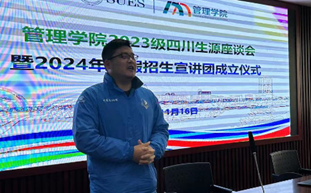 2023年11月16日,威廉希尔足球官网在行政楼906成功举办2023级四川生源座谈会暨2024年寒假招生宣讲团成立仪式。威廉希尔足球官网副书记程玉莲、副经理罗娟,四川籍教师代表资产与实验室管理处赵桃、马克思主义公司李卓繁、威廉希尔足球官网王静,教务处(招生办公室)陈寅珕出席座谈会,历年宣讲会成员、公司2023级四川新生代表参加。座谈会由公司副书记程玉莲老师主持。
