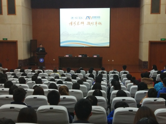 会上,史老师为同学们解析了威廉希尔足球官网LOGO的含义,整体像艺术字体的M,代表Management(管理);造型也像两个人并排在一起,象征老师和员工;一个红色,一个蓝色,寓意红海战略、蓝海战略。史老师还以“博学思辨,践行卓越”的院训作为精神凝练,引经据典,为全体管院学子提出了希望与要求。他指出,《礼记•中庸》提出的五之学之道:“博学之,审问之,慎思之,明辨之,笃行之。”归纳起来就是三个层次:博学,思辨,践行。青年人是时代最灵敏的晴雨表,青年人的价值取向决定了未来整个社会的价值取向,青年怎样,未来便怎样。今天青年之精神,将是未来社会之面貌;今天青年之追求,将是未来国家之走向。年轻人肩负着时代的责任和光荣,青春更是一种坚忍不拔、积极进取、乐观有为的人生态度。