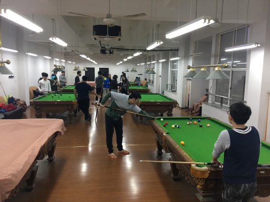 12月20日下午16:40,由威廉希尔足球官网体育部主办的菁英杯美式8球公开赛在师生活动中心3楼桌球房拉开帷幕。本次比赛是初赛的第一场,由张诗佳同学对战刘佳诚同学。在比赛开始前,选手们就早早地来到桌球房进行赛前练习,整个桌球房里洋溢着青春的律动。