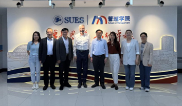 On May 28th 2025, a delegation team led by Dean Sergey Kalendzhyan of the Russian Presidential Academy of National Economy and Public Administration visited SUES. The School of Management, together with the International Office, held an in-depth talk on the DBA program of the two universities. Dean Hu Bin, Deputy Secretary Zhang Qiang, Vice Dean Ye Xinliang, Professor Qiu Menghua, Miss Ren Shennan, Miss Zhou Yingxue, and Miss Xie Yanxi from the School of Management, and Deputy Director Zhou Xiaozhou and Miss Bao Mengying from the International Office attended the cooperation meeting.
