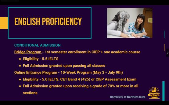 Yi Anderson and Katie Hillyer each introduced the location, scale, transportation, school-running characteristics, school rank and so on in detail through PPT, and mainly explained the majors and application conditions involved in the “2+2” double degree program, especially the application deadline. After the meeting, the students present at the meeting actively discussed the issues of studying majors and curriculum docking in the United States. This presentation has laid a good foundation for the progress of the 2+2 project between our school and the University of North Iowa.