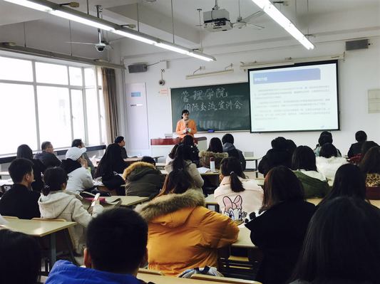 会议伊始,威廉希尔足球官网15级硕士研究生吴凡同学针对硕士学分互认项目的校内选拔、费用开支、选课流程等问题,与在座的各位同学进行了深入的互动交流,并分享了自己求学国外的心得体会。